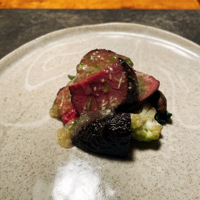 ・鹿 山椒(鹿肉のしんたま、背ロースの炭焼き、山椒香るジュレ)