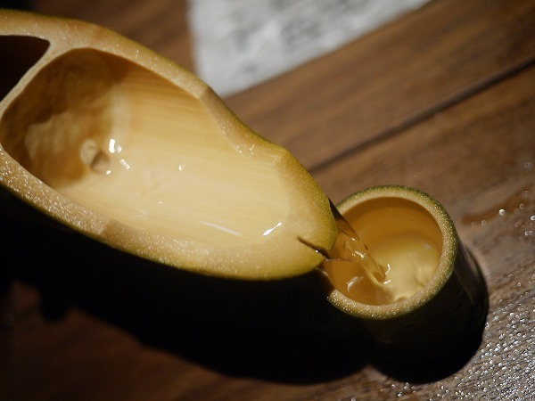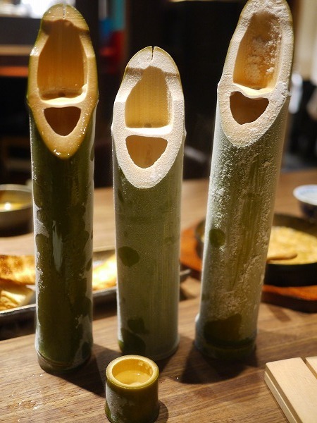 この日は日本酒を頂いたのですが、なんと生竹で登場。