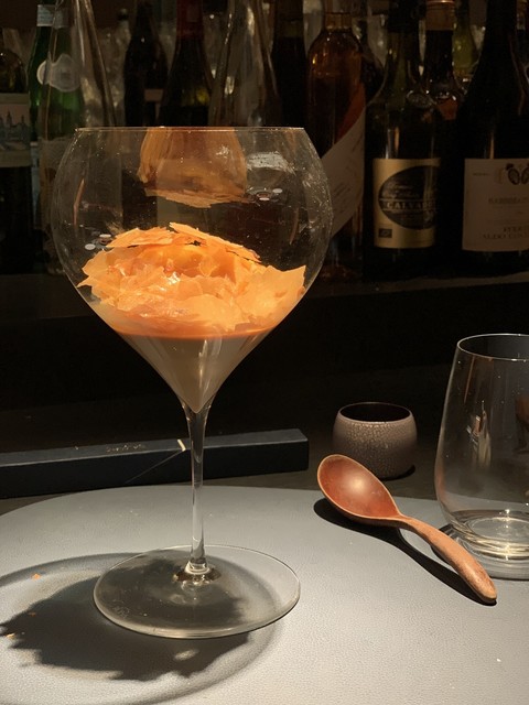 いつ伺ってもワインとの組み合わせが素晴らしく、唸らされます。食材のプレゼンテーションがかわったみたいで、キャビアや白子など豪華食材の盛り合わせを最初に見せてくださるのがテンション上がります。こんな組み合わせが!という驚きが味わえるのが楽しいお店。