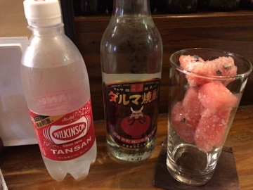 奥に控えるピンクの飲み物はバイス(梅酢)の外だけ、ナカ焼酎は入れていません。