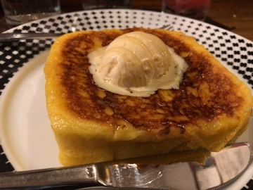 玉子とミルクがたっぷりしみ込んで、バニラアイスとの相性もよいですね。