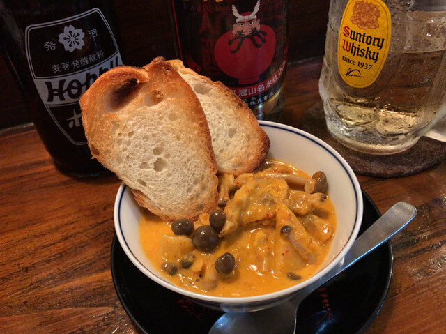 大阪の中津にあった角打ちの店の名物メニューだったそうです(早速ググった)