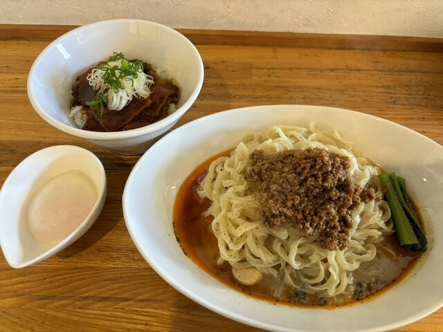 平日の朝らータイムに訪問、醤油らーめん¥1050と海苔TP¥200、かわりそば(本日は汁無し担々麺)¥550を頂きました。敢えて丼をセットしないパターンです。