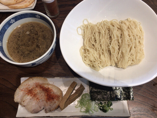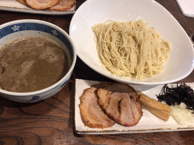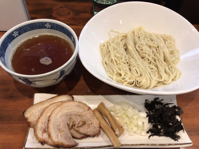 ・清湯系スープに細麺は絡みにくいと思いきや、つけて啜ると、まあ美味しい!!煮干しと水のらーめんのスープと一緒らしいけど、香りとか旨みが凝縮されてるせいか、別モノに感じる。。