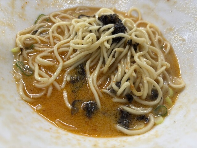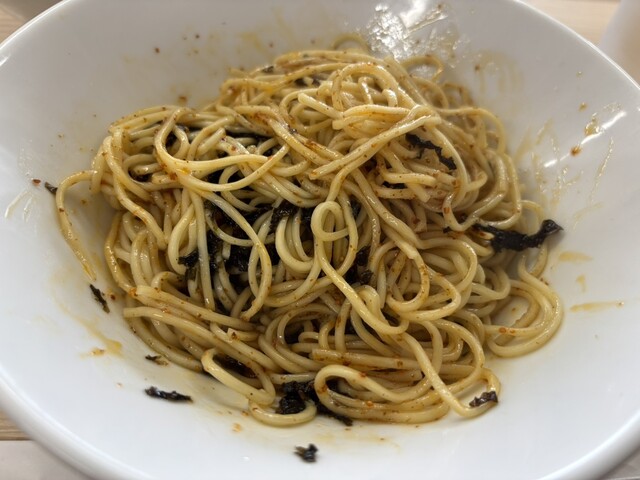 要約すると、節系と昆布出汁ベースのらーめんに味変用の胡麻ペーストを別添えしたものです。胡麻の代わりに辛ねぎも選べたのですが前回冷やしの胡麻が美味しかったのでコレにしました。ただ今回はスープが美味すぎて胡麻ペーストを入れるのを躊躇いました〜 案の定 絶妙な風味をほとんど胡麻に持ってかれたので入れずに食べ切って和え玉に使っても良かったかも。選択肢が増えると楽しいけどムズイですね。デミ塩もタレとネギの仕様が変わってたけど美味しかった!