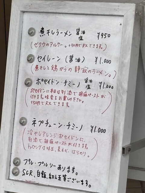 ポセイドンマルチフォーム醤油(セサミフォーム)¥1000を頂きました。チャーシューは豚バラを選択、トッピングにもみ海苔¥50を追加。後からデミ塩¥250も頂きました。