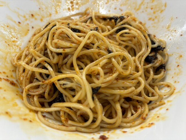 煮干しと貝出汁美味い。ラーの辛旨さヤバい。
