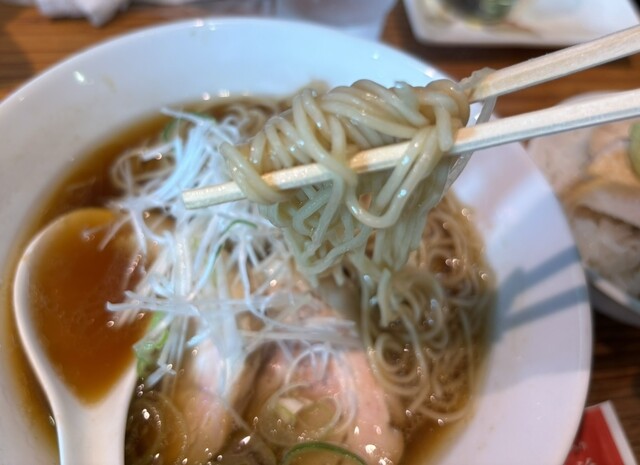 ・新小麦ブレンドされてる時期なので敢えてシンプルな醤油で味わう。モチつるな食感と小麦の味わい。聞かれても新かどうかわからんが美味い。スープは変わらず真っ直ぐで深くキレがある。美味い。具は白髪ネギと輪切りのネギだけなんだけど何も足りない感じがしない不思議。