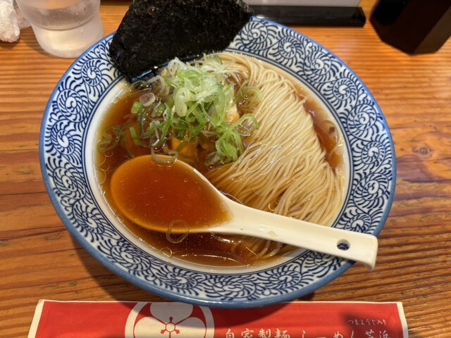 ・滑らかで小麦の味のしっかりした自家製細麺と合わせ飽きのこない味。トッピングは二種のネギのみですが、マッチし過ぎて過不足を感じさせません。