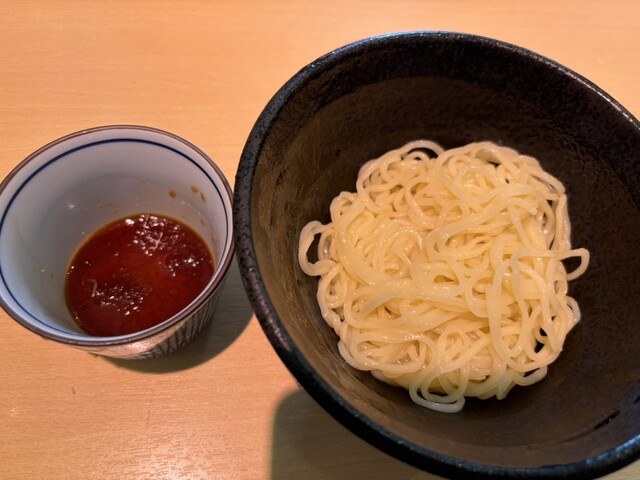久しぶりに小麦三昧を頂きました。特に2品目のつけ麺はモチモチの甘い麺とキリッと辛いつけ汁のコンビが芸術の域。麺の先にチョコンとつけ汁を、という食べ方は「通ぶってカッコつけて」と思うけどホントに意味というか良さがわかる!先に口に入るのは当然つけ汁の付いていない麺なんだけど、小麦の自然な甘さとモッチモチの弾力がメチャ美味い。そしてズズッと啜ってつけ汁の付いた麺が口に入ると小麦の甘さと醤油と大根の辛さが混じって何コレ?な美味さが爆発。他では体験できないラーメンと思う。3品目は醤油ラーメンを選んだが追い鰹がなるほどと思わせる多重的な旨みと醤油のキレを楽しめました。麺もパツパツで最高。