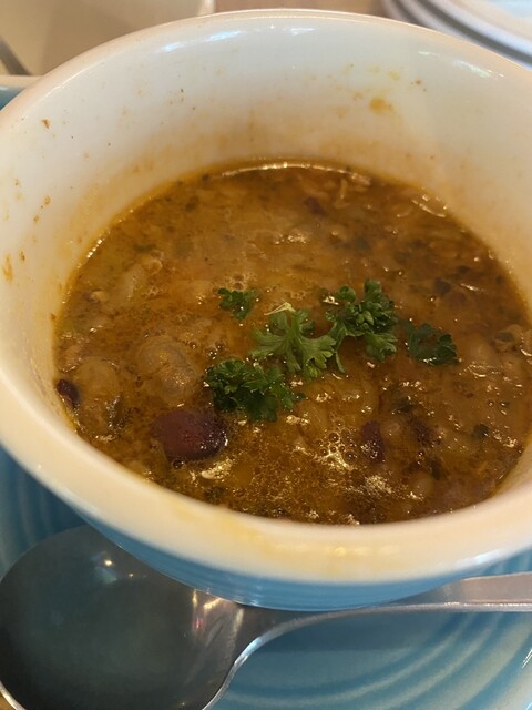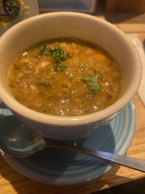 友人はチリビーンズスープがスジ肉仕様になってから食べてなかったので、是非とも食べてもらおうと思ってたんですが、2日前ぐらいにインスタでガンボスープに変わったのを確認。笑