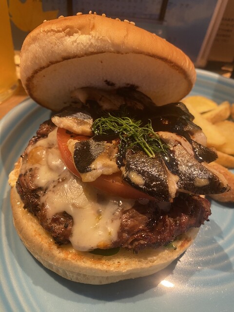 秋刀魚バーガーでずーっと飲めるほどの味のしっかりしたチーズバーガーでした。