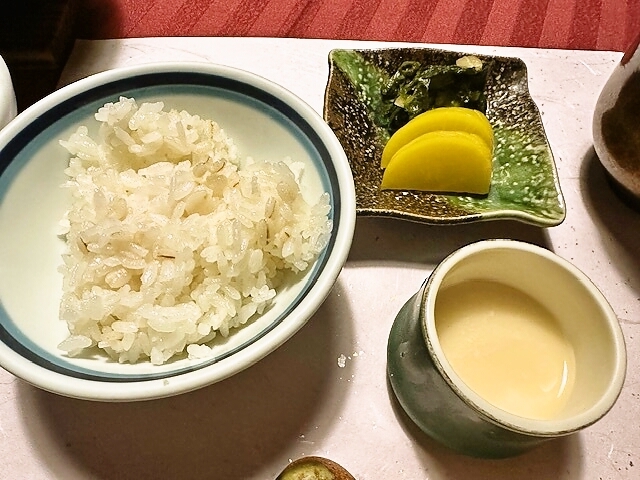 留椀「枝豆真丈のお吸い物」と香の物「沢庵・おみ漬け」