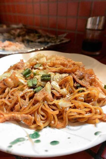 「すぎや」さんでの〆の炭水化物はいつも「ナポリタン」だが今回は「焼きそば」をチョイスしてみた!!モッチリとした麺が「富士宮焼きそば」っぽい感じである!!