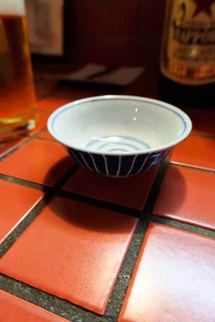 この日の出没は12月の中旬!!やはりシーズン真っただ中ということで忘年会の団体客が数件入っているようだったがtakezoの出没時間は早い時間帯だったので他のお客さんは誰も居ず店主さんとしばし日本酒談義に花が咲いた!!先ずは「生」【自家製塩辛】