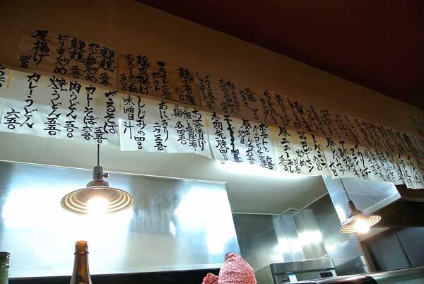 さてお料理は・・・と驚いたのは料理の種類の豊富さである!!カウンターの上やテーブル席の横の壁に所狭しと一品ものや〆の麺類はたまたパスタなどまで数多くの料理メニューが貼られている!!しかもどの料理も非常に安いのである!!
