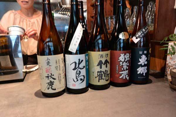 そしてカウンターに並べられた燗酒用のお酒たち!!もちろん冷や(常温)でもOK!!