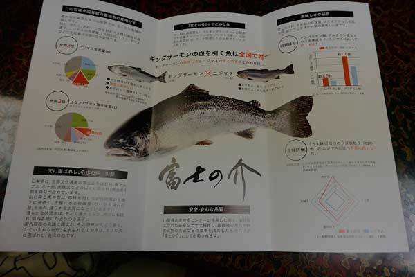 さて今回のコース料理のメインはキングサーモンと山梨県で生産量ナンバーワンのニジマスを交配し開発され去年(2019年)10月から出荷が始まった山梨県のブランド高級魚である「富士の介」という(値段も結構お高めの)魚である!!