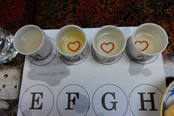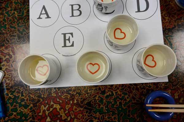 とりあえず前半の4酒の色あいはこのような感じである(後半は撮り忘れ(汗))!!Aのお酒は濁っていてBのお酒は黄金色をしている!!