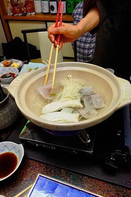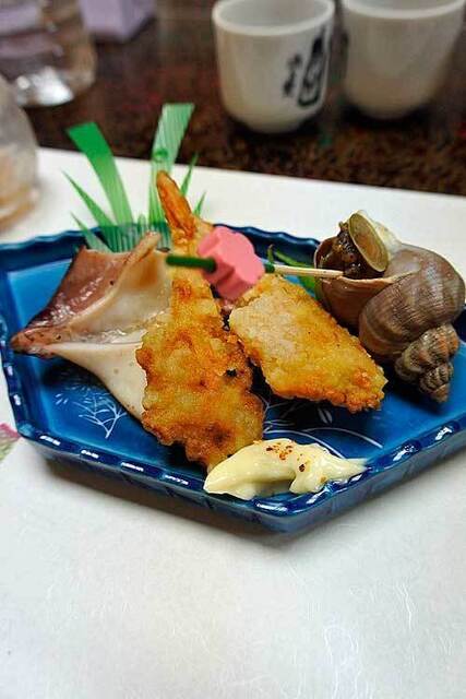 「富士の介」は某テレビ番組でも取り上げられたこともあるほどの人気で(県内でも)取扱店もまだ少なくなかなかの貴重な魚なのだそうである!!今回はそんな貴重な「富士の介」の「刺身」や「焼き」「骨せんべい」や「肝煮」などがコースで登場!!その他「ホヤ」「ハモの土瓶蒸し」「カツオの刺身」などなど盛りだくさんである!!