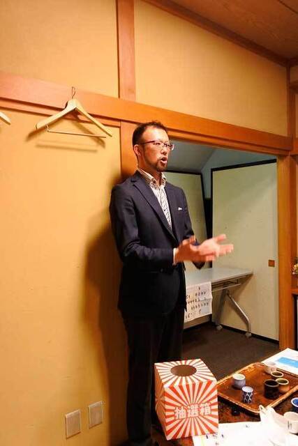 会もそろそろ大詰め!!「蔵元様を囲む会」恒例抽選会!!呑み切れなかった「山間」は抽選によって好きなのを持って帰って頂戴!!今回本数が多かったので希望する方全員にお酒が当たったようである!!