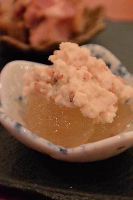 カウンターの目の前にある「かんすけ」にてつけているところを拝見していると一度ちろりで温めたお酒を徳利に移してその徳利を再びお湯の中へ入れ最終的に狙った温度にして出してくれているようである!!これはお酒に空気を含ませることでアルコールの角を取ってまろやかにするためなのだが(やり方は違うが)西荻窪の「善知鳥」さんでもお酒に空気を含ませる「お燗タージュ」をやられていた!!