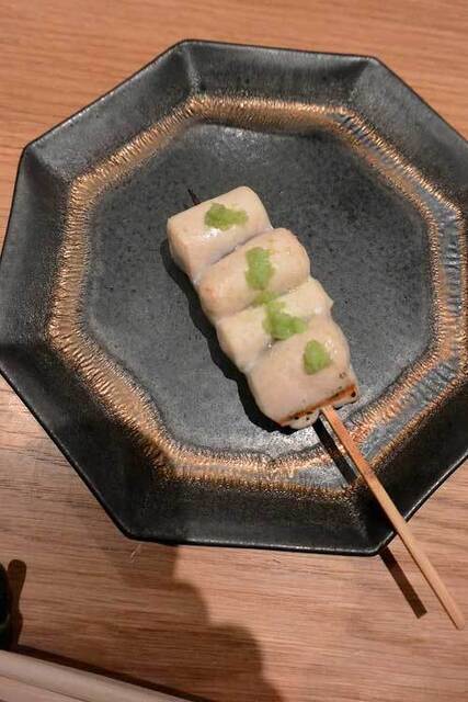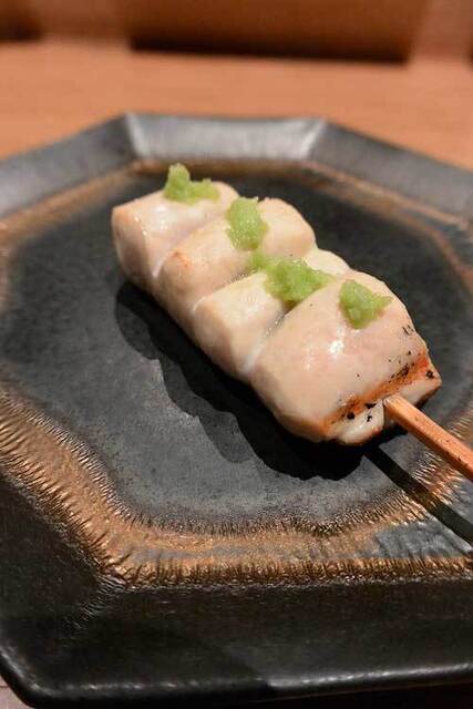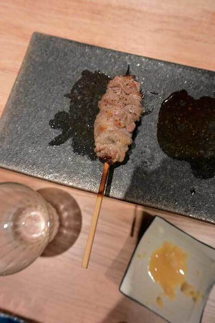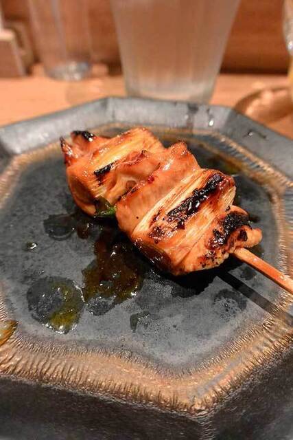 次のお酒もメニューに掲載されていないお酒で石川「菊姫」!!店主さんに「お燗が出来ますか?」とお伺いしたところ大丈夫ということで「菊姫」は熱めのお燗で!!濃厚な味わいが「焼き鳥」に合う!!この後お酒は先ほど呑んだ「蒼空」をお燗で!!