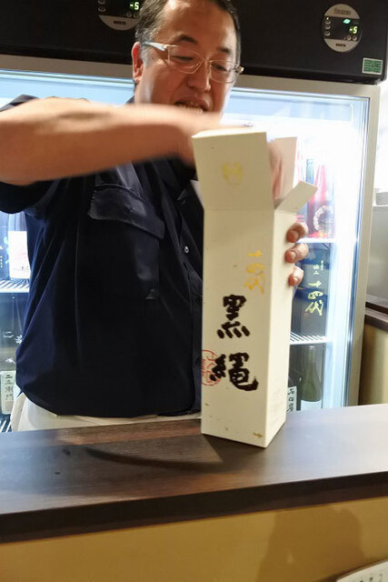 そしてカウンターの目の前にある冷蔵庫には店主さんが集めたという日本酒がぎっしり!!中には超がつくほどの人気である「新政」や高価な「黒龍」!!海外向けに造られたという「旦」の「亀の尾」バージョン(これ見たことなかったわ)などなど貴重なお酒も並んでいる!!