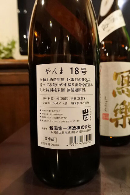 2.【山間特別純米仕込み18号無濾過原酒(R4BY)】(新潟第一酒造@新潟県上越市)