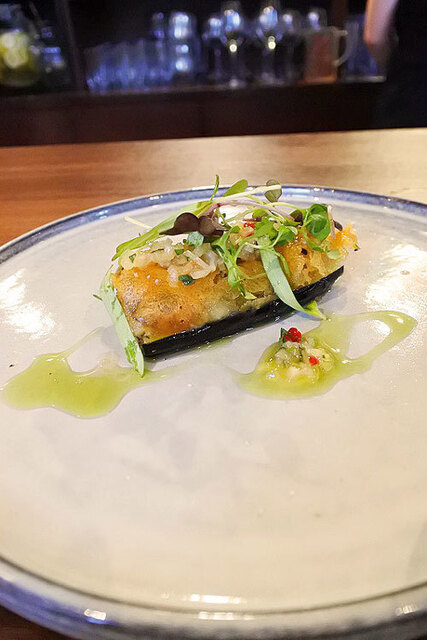 口にあたる骨は全て取り除いた季節の鮎をコンフィにした後ベニエ生地で揚げさくふわに仕上げましたとのことでなんともこれが美味!!!!!「鮎」の身は口の中で溶けてなくなり鮎独特であるわたのほろ苦さがお酒と合う!!