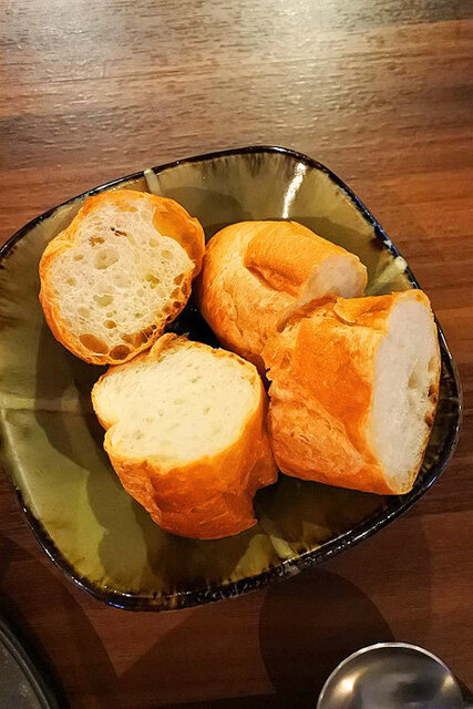ということで「パン」を所望!!「一時期パンに塩を付けてそれを食しながらひたすらワインを飲んでいたなどと」あまり健康的ではない飲み方を某氏がしていたという話をしていたら「塩」も付けてくれた(笑)!!