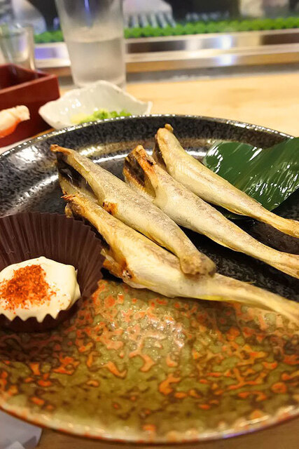 「目光の唐揚げ」は1匹単位から注文可能だということで(嬉しいね)今回はとりあえず4匹!!普通そのままの状態で唐揚げとなるが「弥助鮨」さんではわざわざ開いて揚げているようだ(手間がかかっている)!!