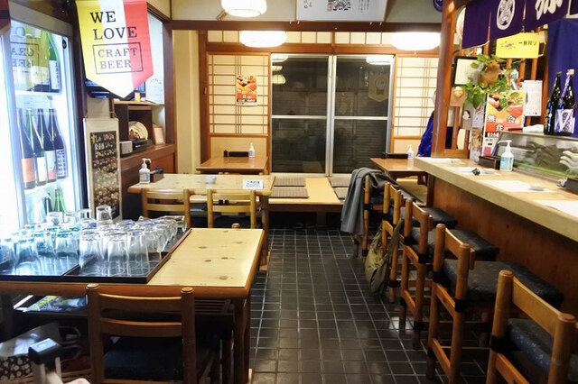 店内はカウンターとテーブル席と奥に小上がりそして2階には30人ほどが入れるような大きな座敷席もあるよう!!お店は話好きの店主さんと優しい女将さん二人で切り盛りされており店主さんの代で(確か)四代目とのことでけっこうな老舗店である!!