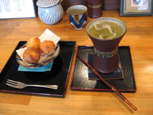 シークヮーサージュースとサーターアンダギー