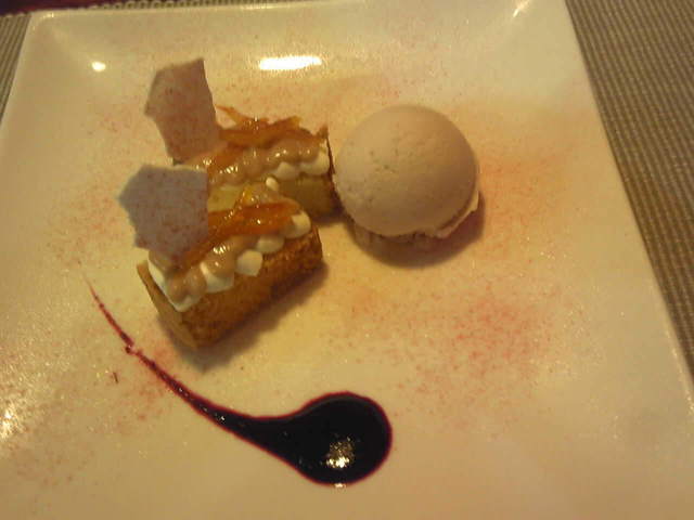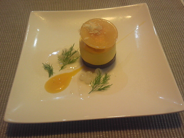 今月のドルチェ、オレンジのティアンと柑橘のソルベ添えの写真を追加しておきます、勿論これも旨かったですよ。(^v^)