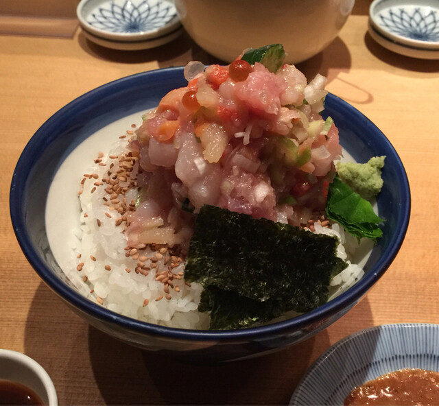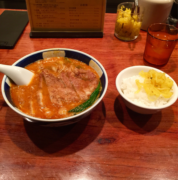 この店、人気ラーメン店の『つじた』と、超行列天丼屋の『金子半之助』がコラボしてるらしい。