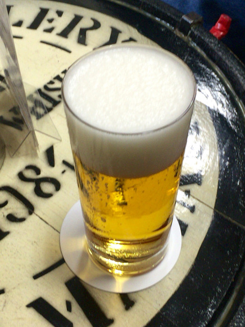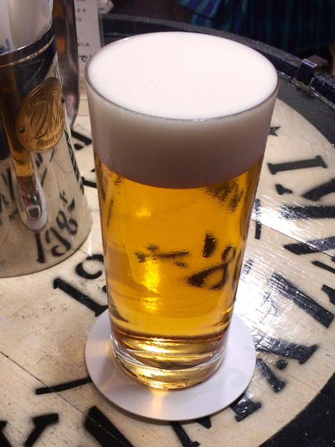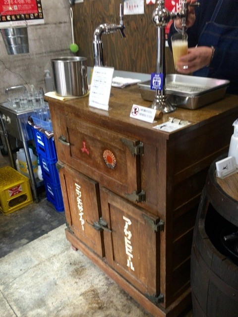 お店に入ると、樽のテーブルにスタンディングで待ちます。