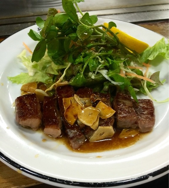 お目当のうにクレソン、ステーキ、アスパラバターをオーダー。