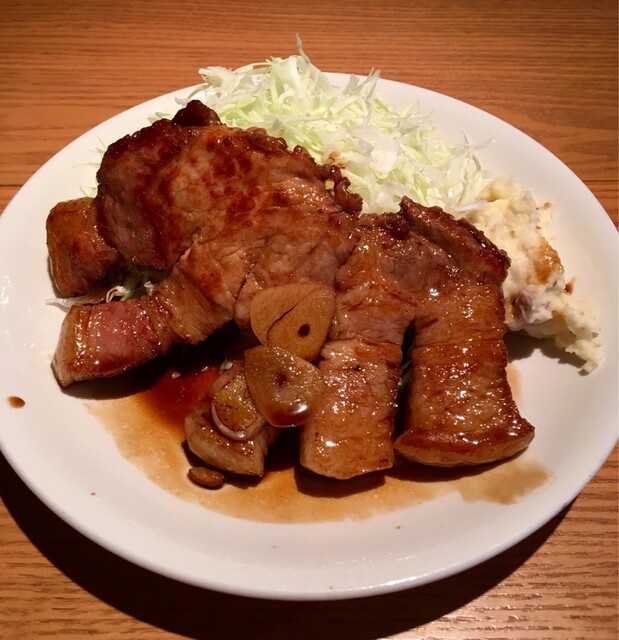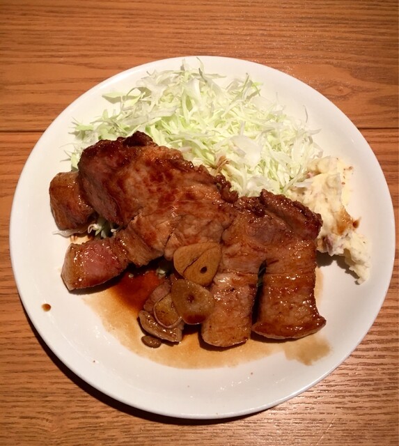 料理は、オススメの四日市トンテキ、レバテキに大根の辛子漬け。