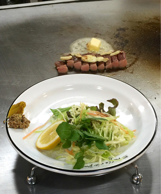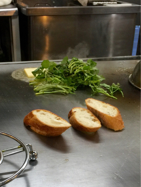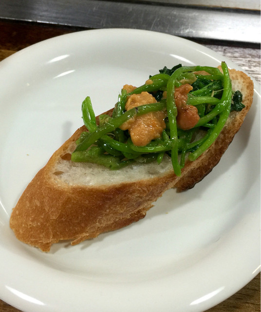 お目当のうにクレソン、ステーキ、アスパラバターをオーダー。