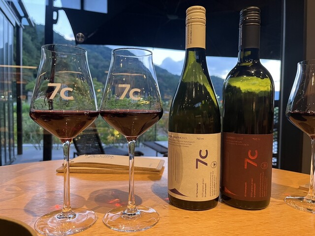 夜はラウンジで食事、スパークリング+ペアリングワイン5杯。