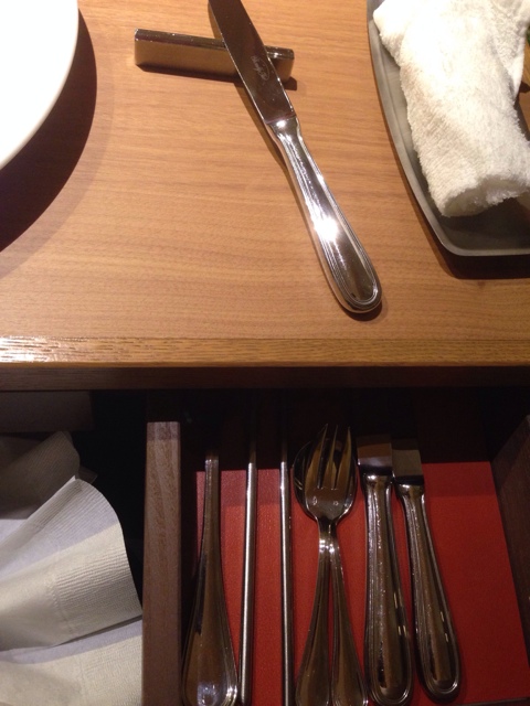 テーブルには引き出しがあり、そこからナイフやフォークなどを出すのが便利でした。