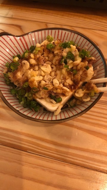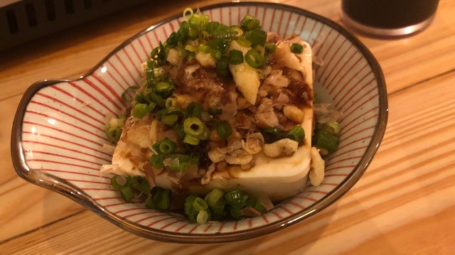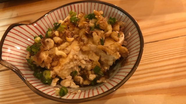 冷奴の上にカリッカリッの天カスが乗っていて食感が楽しめてオススメです