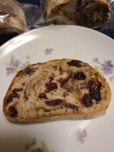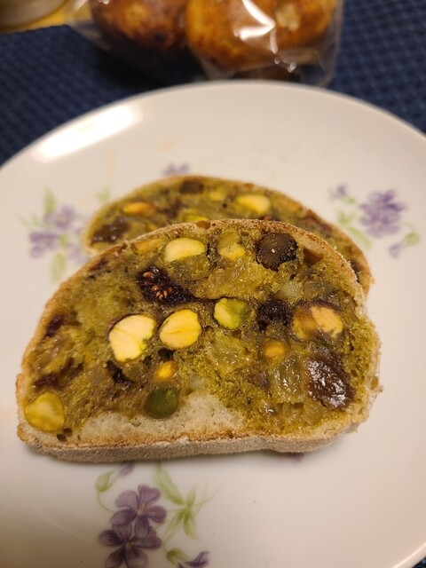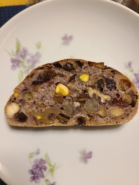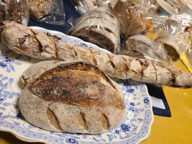 ◎ピスタチオペーストと5種のフルーツ3種のナッツ、日向夏ピールを入れたX'mas限定のアミティエ、◎エディブルローズと4種のフルーツ入りスペシャルローズ、◎紫芋と3種の栗、2種のナッツ、黒豆、芋、柚子ピールと黒胡麻を入れた季節のパン、◎スィトロン、◎ココアと8種のチョコレート、6種のナッツ、りんごと3種のピールを入れたX'mas限定クグロフ、◎パン・オ・フリュイ・ルージュ2023、◎パン・ノワエ・レザンオ・フロマージュ、◎プレジール2019等を購入。どのパンも異次元の美味しさでした。私的に都内で一番好きなパン屋さんに躍り出ました。