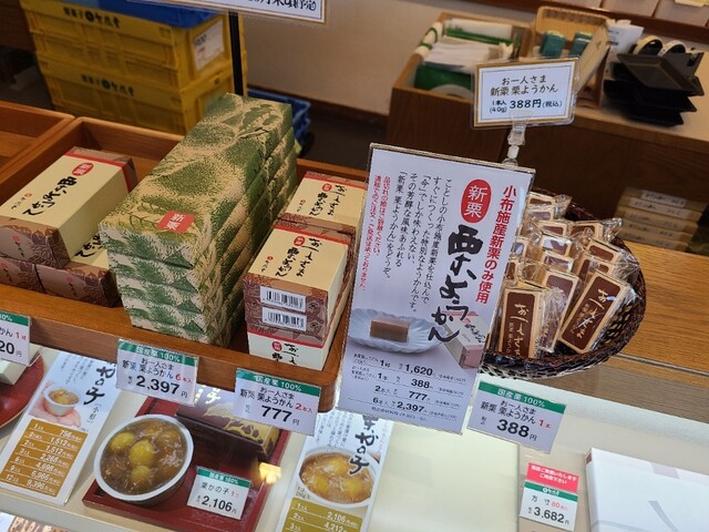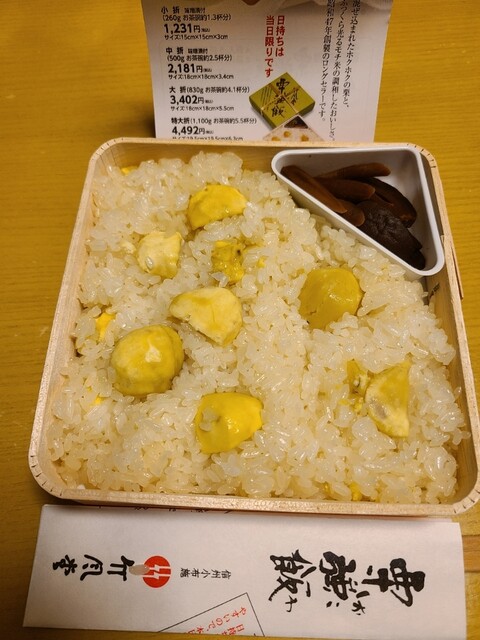 栗おこわ(小折@¥1231×4)、お一人さま新栗栗羊羹1本を買い求めました。