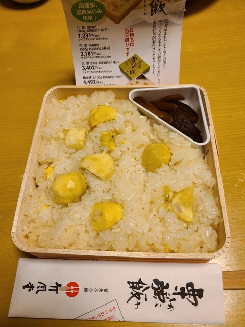 竹風堂の栗おこわは信州小布施本店や慶應義塾大学連合三田会の催事に出店していて頂いたことがあり、その美味しさは重々知っていました。