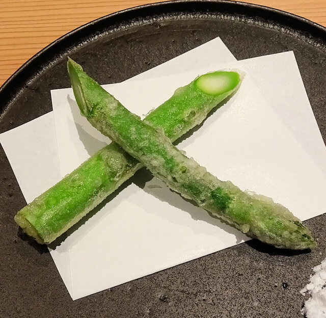 4種類の天ぷらは、1品ずつ揚げ立てを客に出すのを4回繰り返す。熱々で甘みが強く、みずみずしさが口の中にほとばしる。