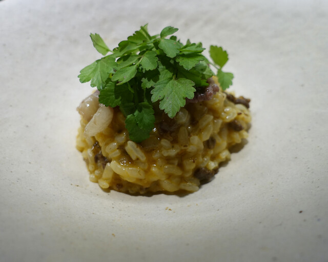 「ツキノワグマのリゾットです」 えっ、ツキノワグマが静岡に!? 聞けば東北で狩猟されたものとか・・・