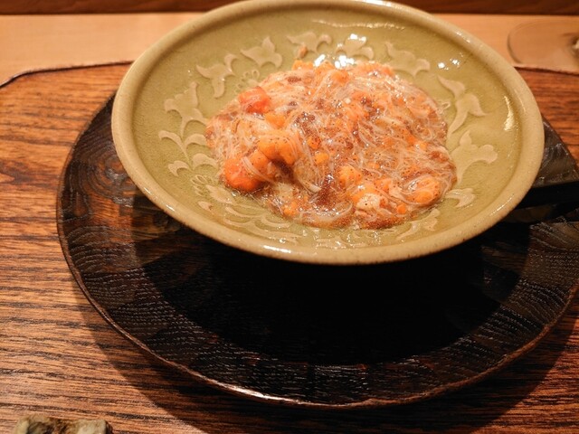 毛蟹の風味を邪魔しない、ほどよく木の芽の入った餡も良い出来。