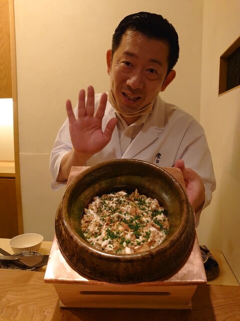 飯蒸しには、香箱蟹。紹興酒と香箱蟹の出汁を